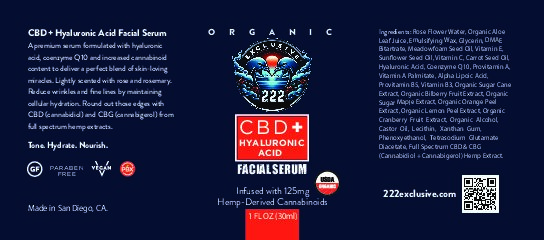 - Friendly Ingredients: Rose Flower Water, Organic Aloe Leaf Juice, Emulsifying Wax, Glycerin, DMAE Bitartrate, Meadowfoam Seed Oil, Vitamin E, Sunflower Seed Oil, Vitamin C, Carrot Seed Oil, Hyaluronic Acid, Coenzyme Q10, Provitamin A, Vitamin A Palmitate, Alpha Lipoic Acid, Provitamin B5, Vitamin B3, Organic Sugar Cane Extract, Organic Bilberry Fruit Extract, Organic Sugar Maple Extract, Organic Orange Peel Extract, Organic Lemon Peel Extract, Organic Cranberry Fruit Extract, Organic Alcohol, Castor Oil, Lecithin, Xanthan Gum, Phenoxyethanol, Tetrasodium Glutamate Diacetate, Full SpectrumCBD & CBG (Cannabidiol + Cannabigerol) Hemp Extract
