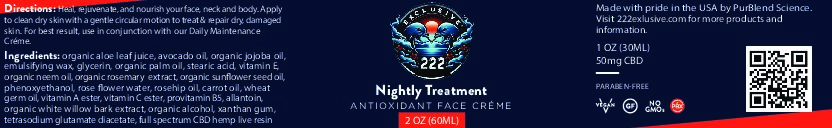 222 Exclusive’s series of facial and body skin treatments introduces the Antioxidant Treatment. Antioxidants are a skin’s best friend, helping to ward off the ravages of time and daily living. Powered by White Willow Bark and Turmeric coupled with CBD from Full Spectrum Hemp Resin creates a seriously medicinal antioxidant treatment. Steeped with luscious organic avocado and jojoba oils, plus rosehip, carrot, and organic neem oil deeply replenishes and revives dry, dull skin, leaving it renewed and rejuvenated. Our soothing base of organic aloe, with nourishing vitamins A, B5, C and E This product fits perfectly with 222 Exclusive’s CBD skin care line.